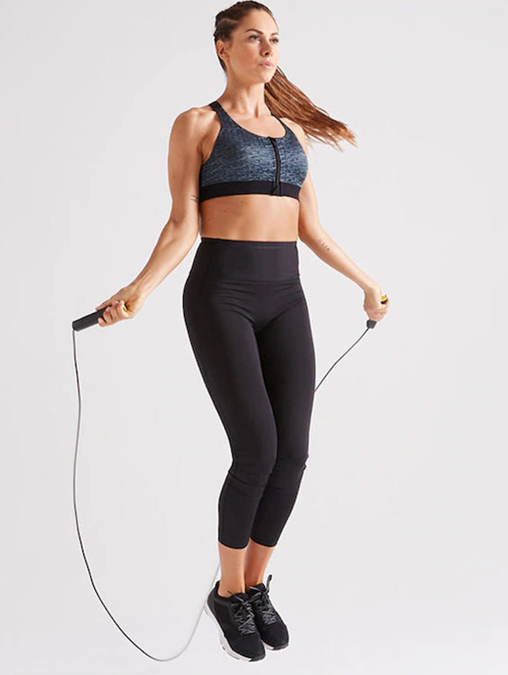 Black solid full-coverage Workout bra Non Padded and Non-Wired seamless cups Halter straps and front closure Back style: Racerback Feature: All Day Comfort