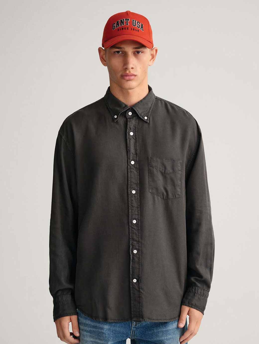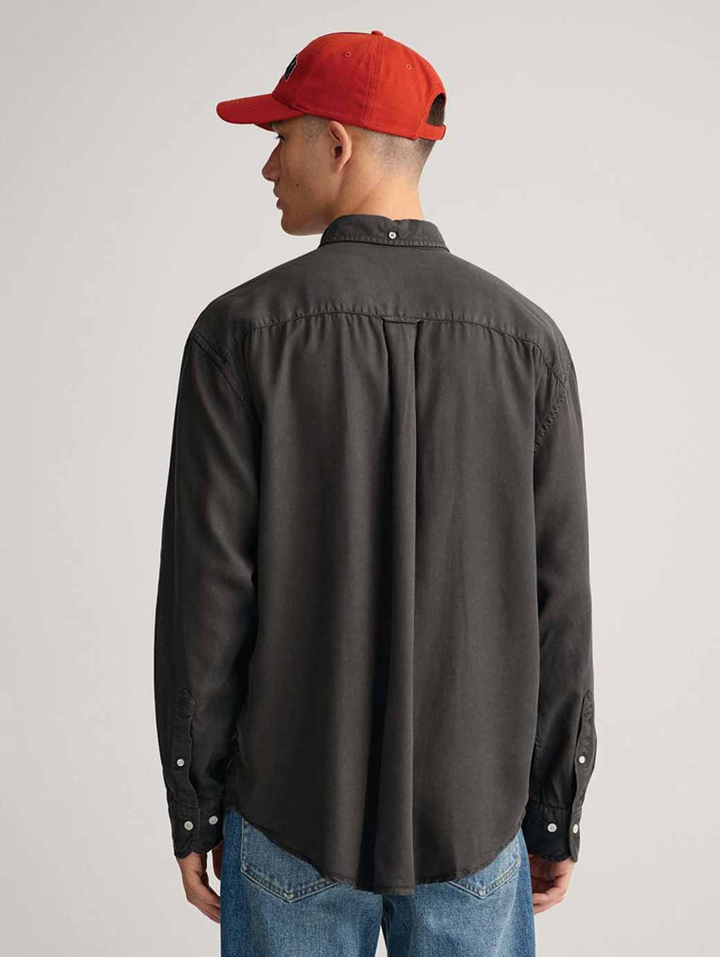 Black solid opaque Casual shirt ,has a button-down collar, button placket, na pocket, long regular sleeves, curved hem
