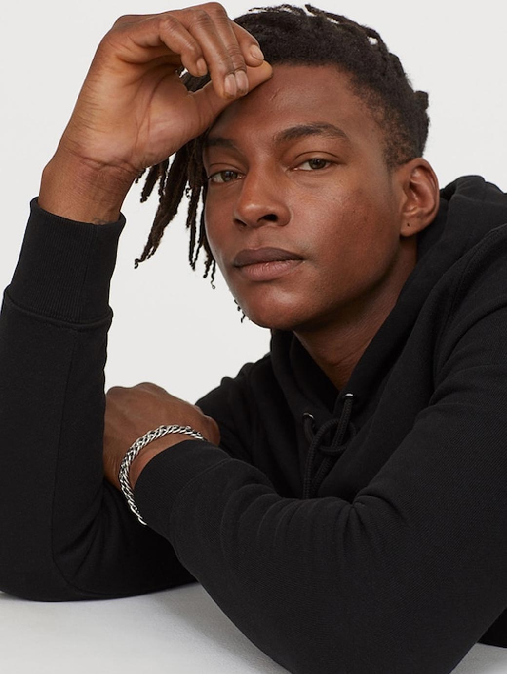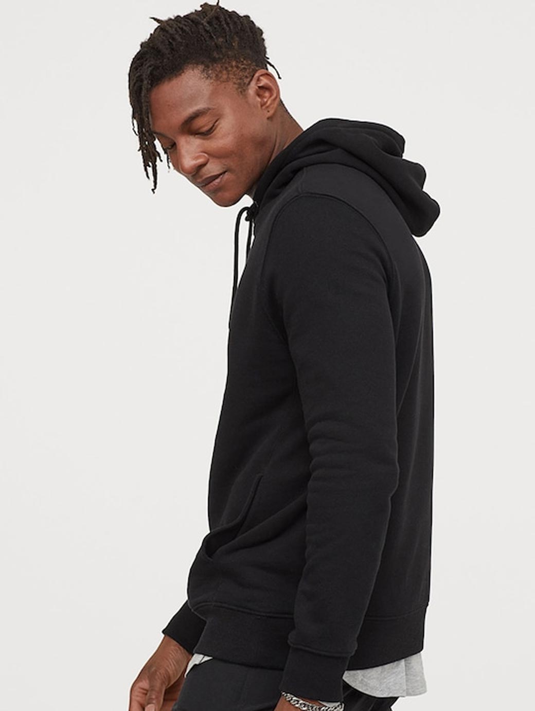 Top in cotton sweatshirt fabric with a lined drawstring hood with a wrapover front. Long sleeves, a kangaroo pocket and ribbing at the cuffs and hem