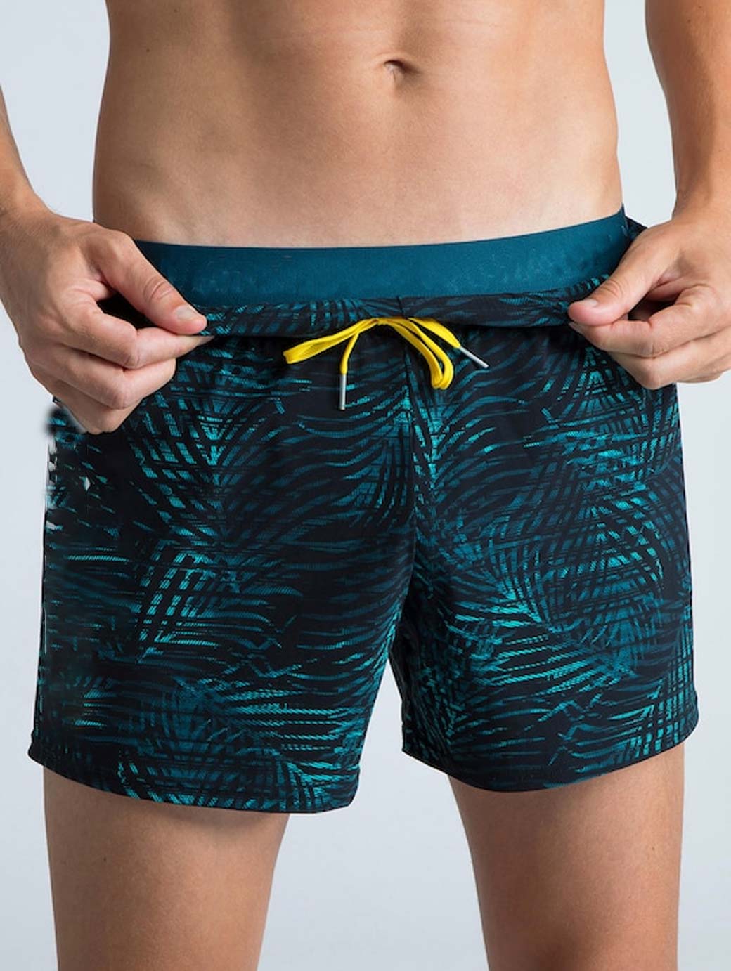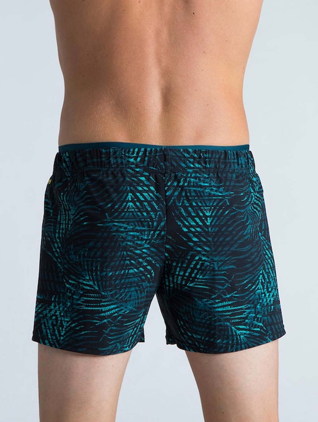Men Black & Turquoise Blue Palm Printed Water Repellent Swim shorts