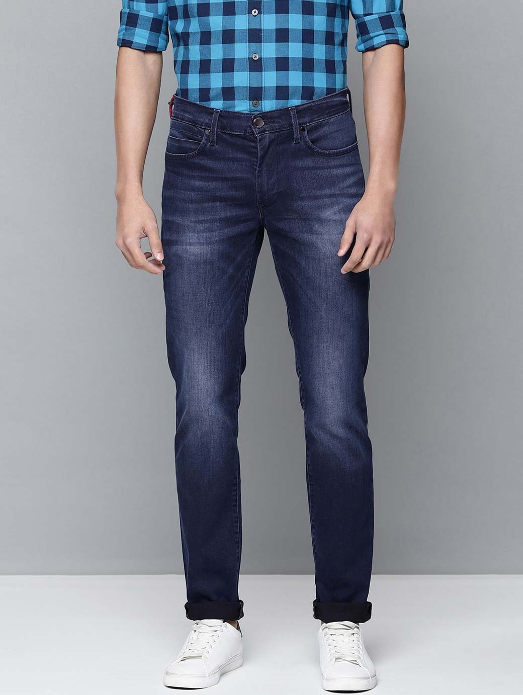 Men Navy Blue Slim Fit Mid-Rise Light Fade Stretchable Jeans