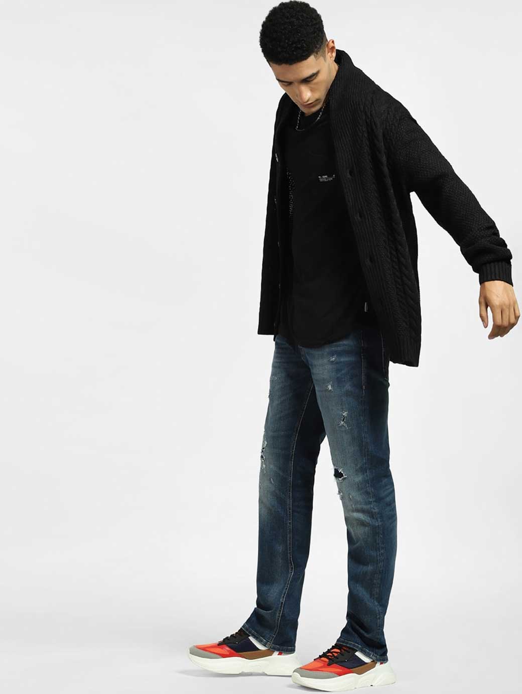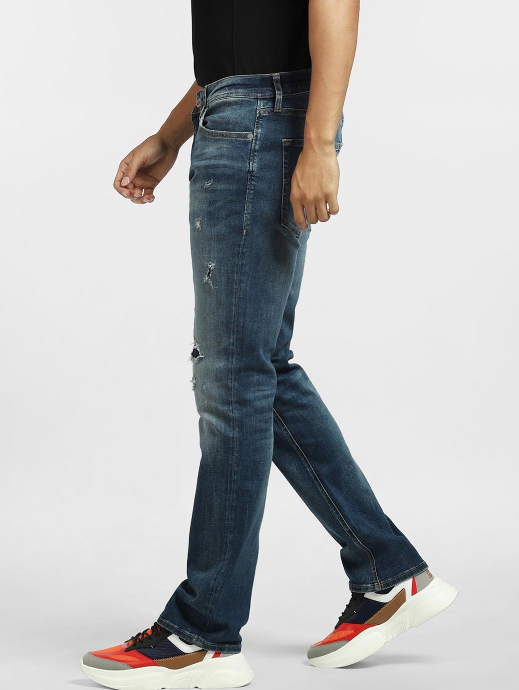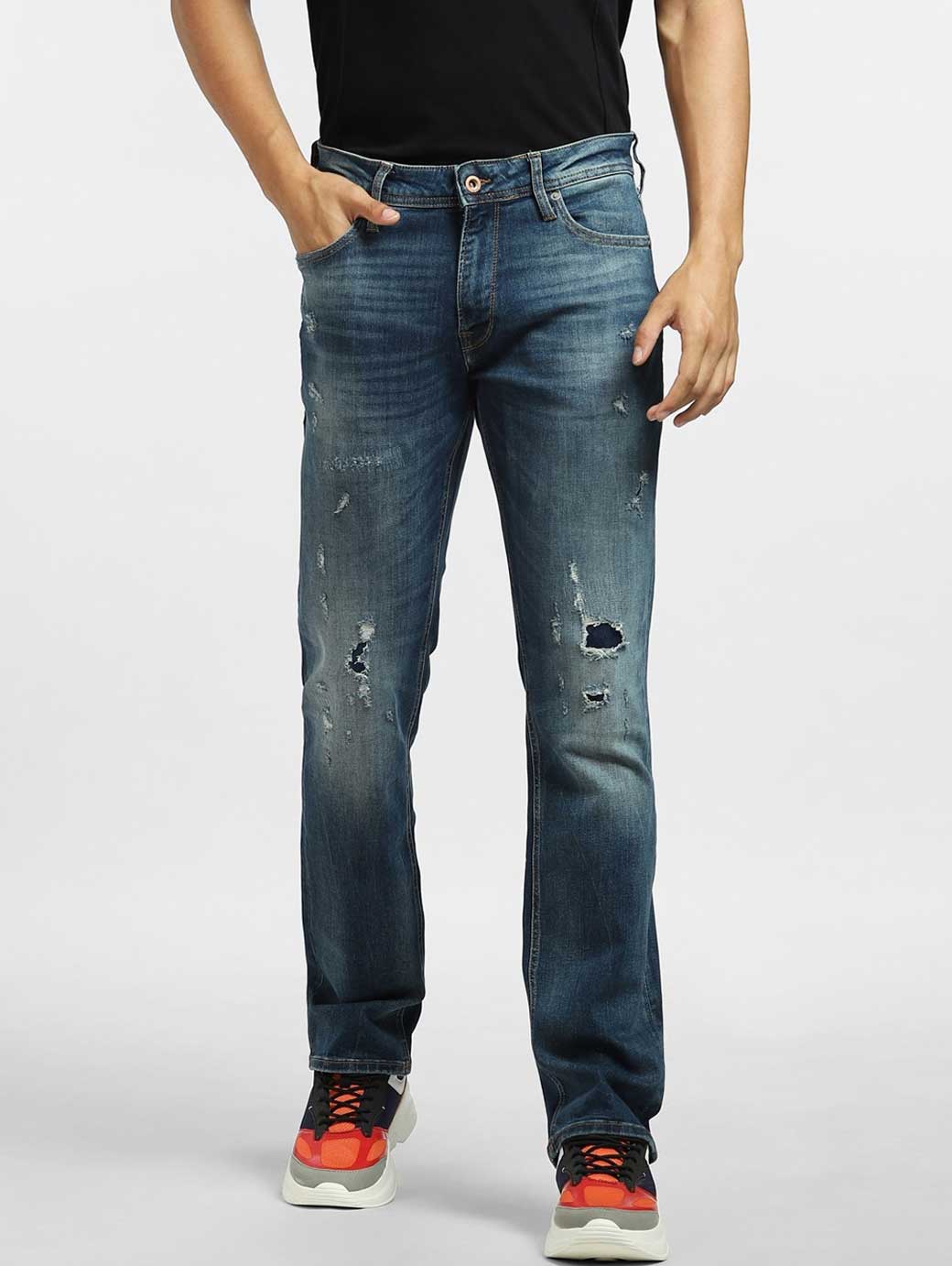Men Blue Low-Rise Low Distress Heavy Fade Stretchable Jeans