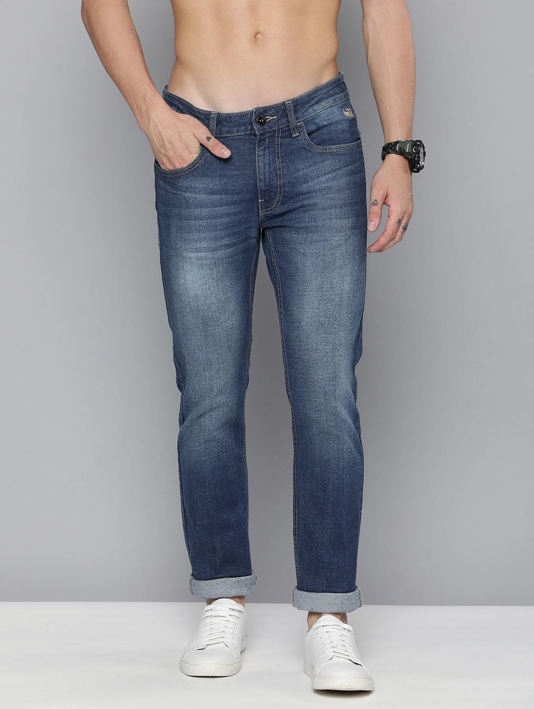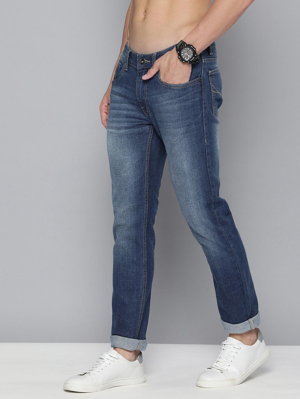 Men Navy Blue Slim Fit Mid-Rise Light Fade Stretchable Jeans