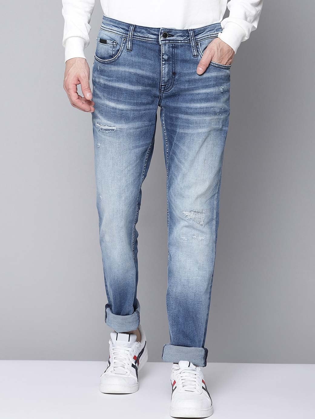 Men Blue Tapered Fit Heavy Fade Stretchable Jeans