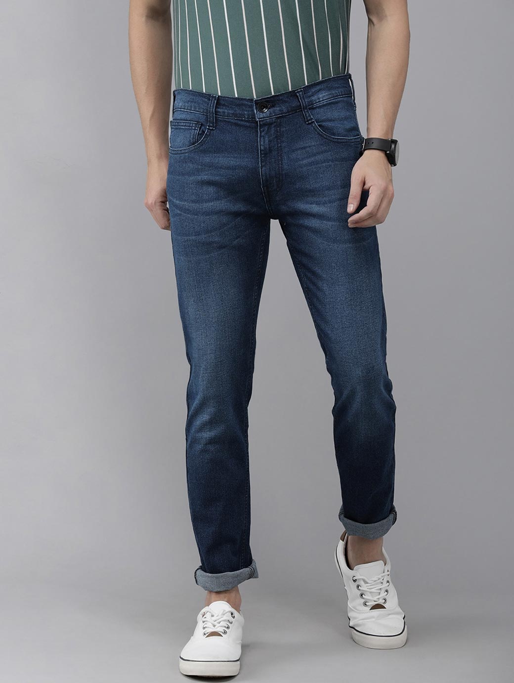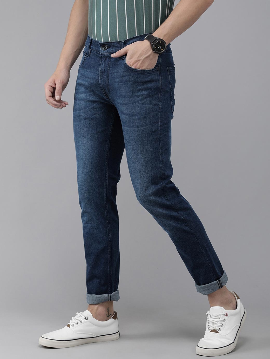 Men Navy Blue Slim Fit Mid-Rise Light Fade Stretchable Jeans