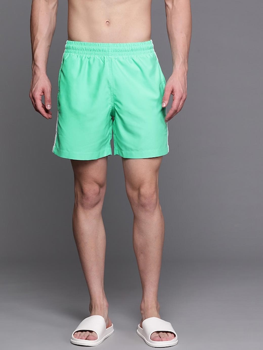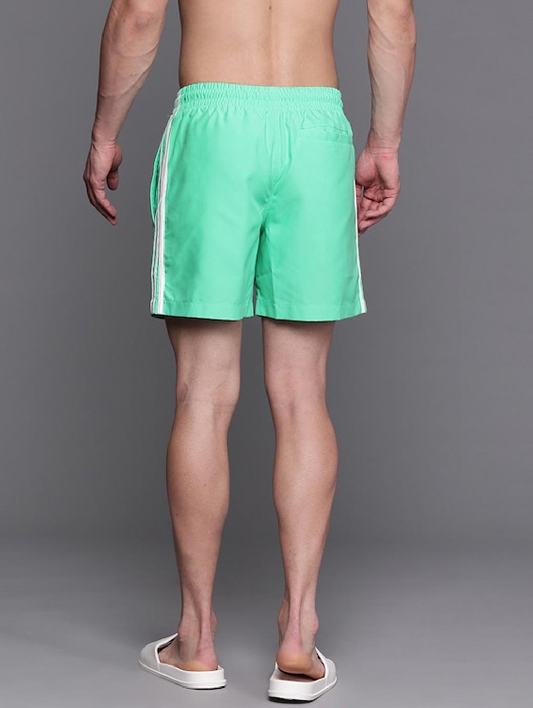 Men Green Solid 3-Stripes Sustainable Swim Shorts