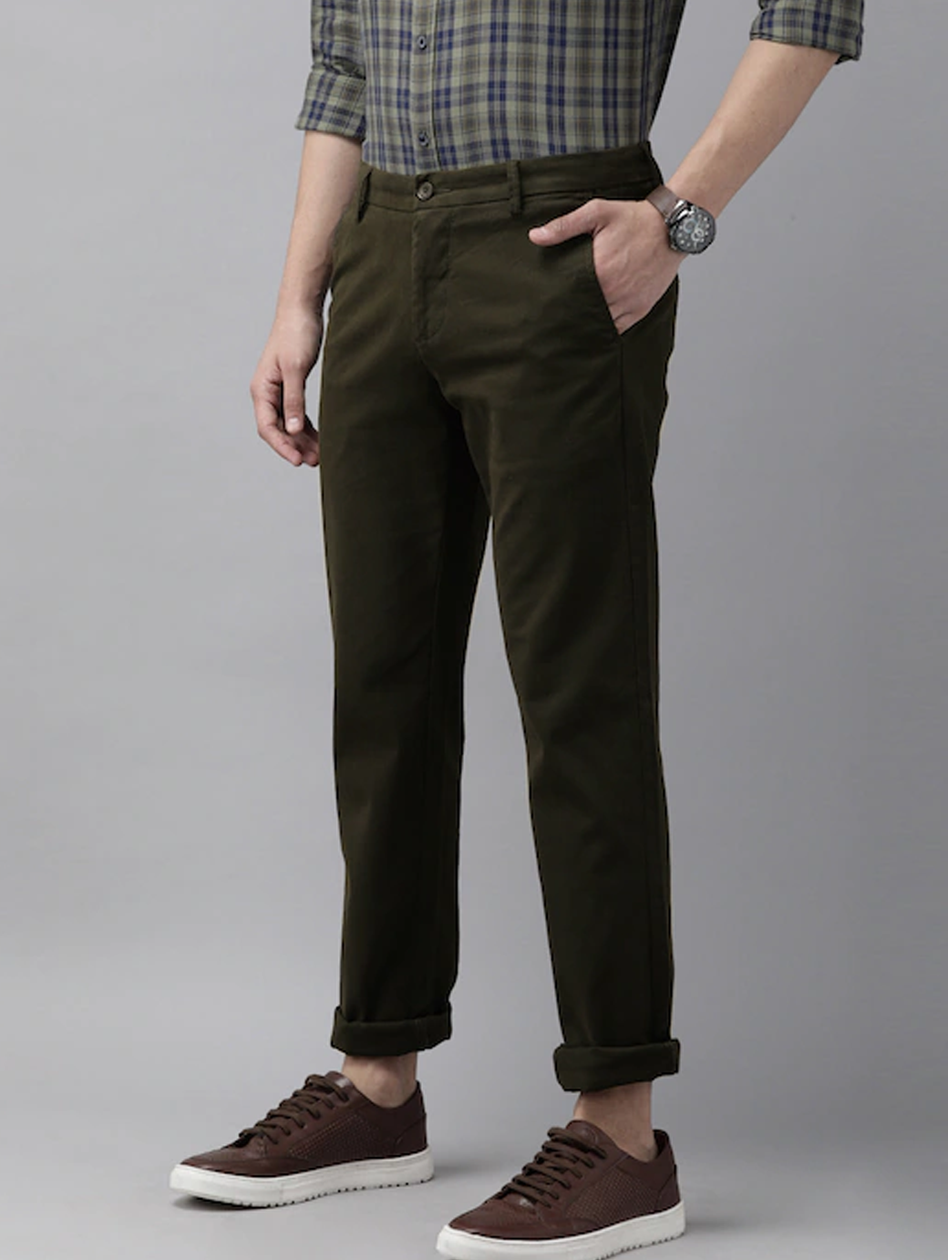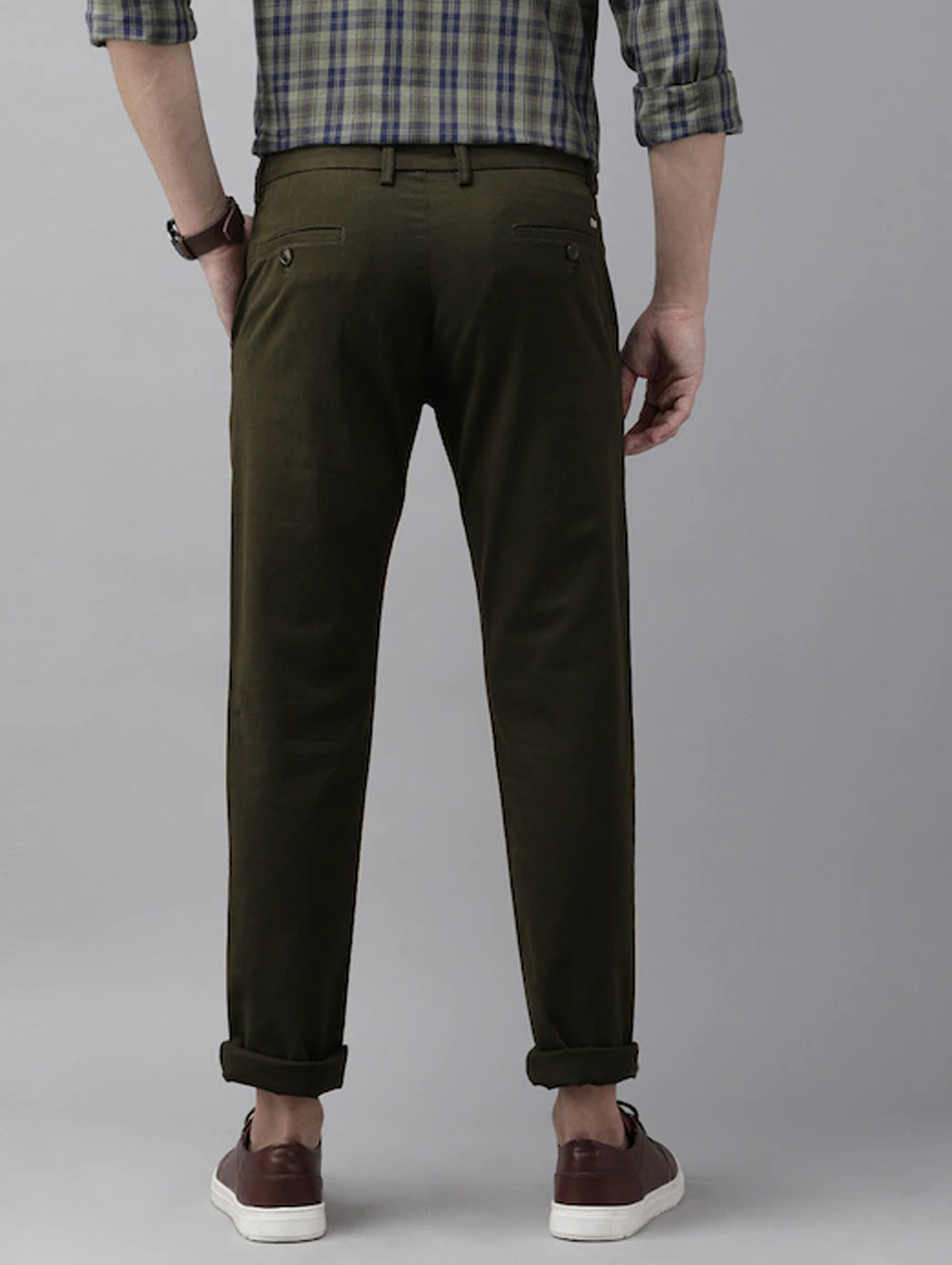 Arrow's casual trousers help you make an effortless statement. This pair features a flat front and is made with solid stretch cotton fabric.