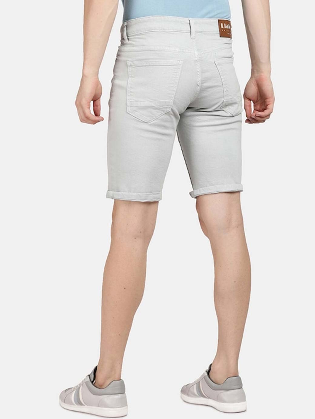 Men Grey Slim Fit Mid-Rise Denim Shorts