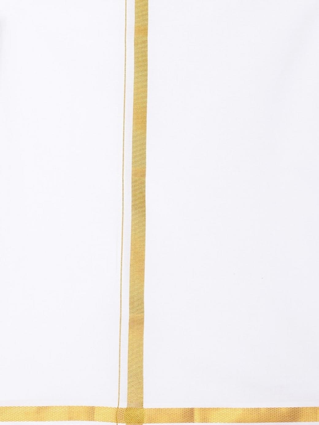Pack of 2 dhotis White solid dhoti, has a gold-colored zari border White solid dhoti, has a silver-colored zari border