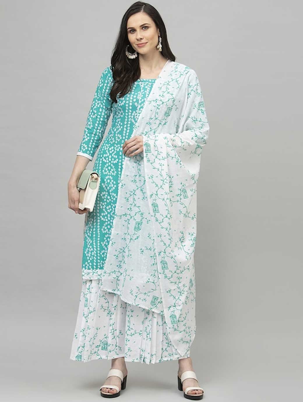 Blue and white Ethic Motifsprinted dupatta, has printed border