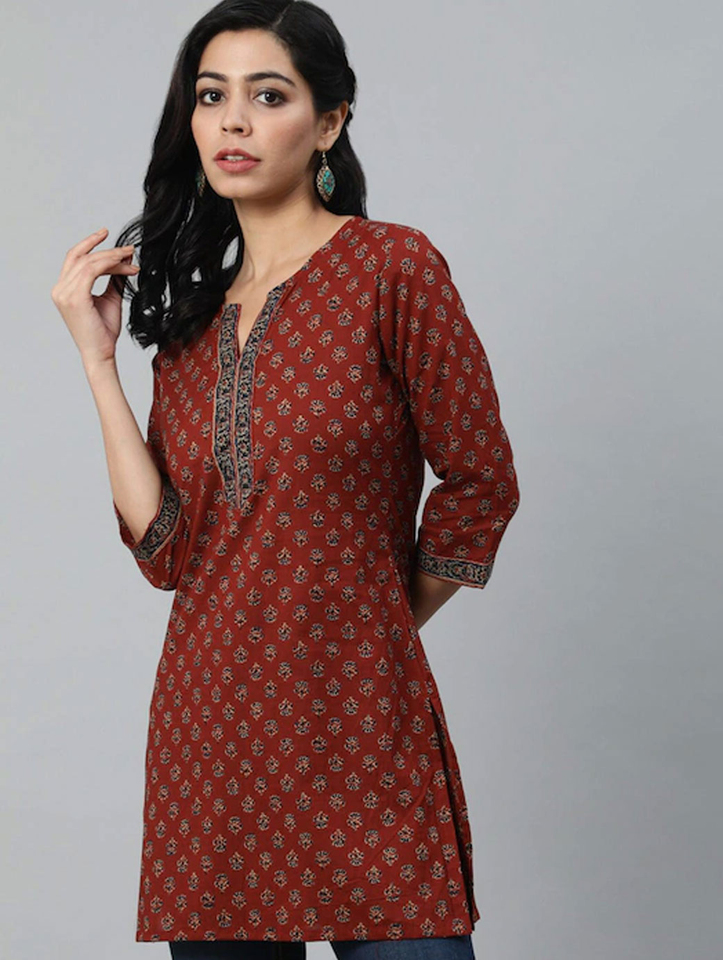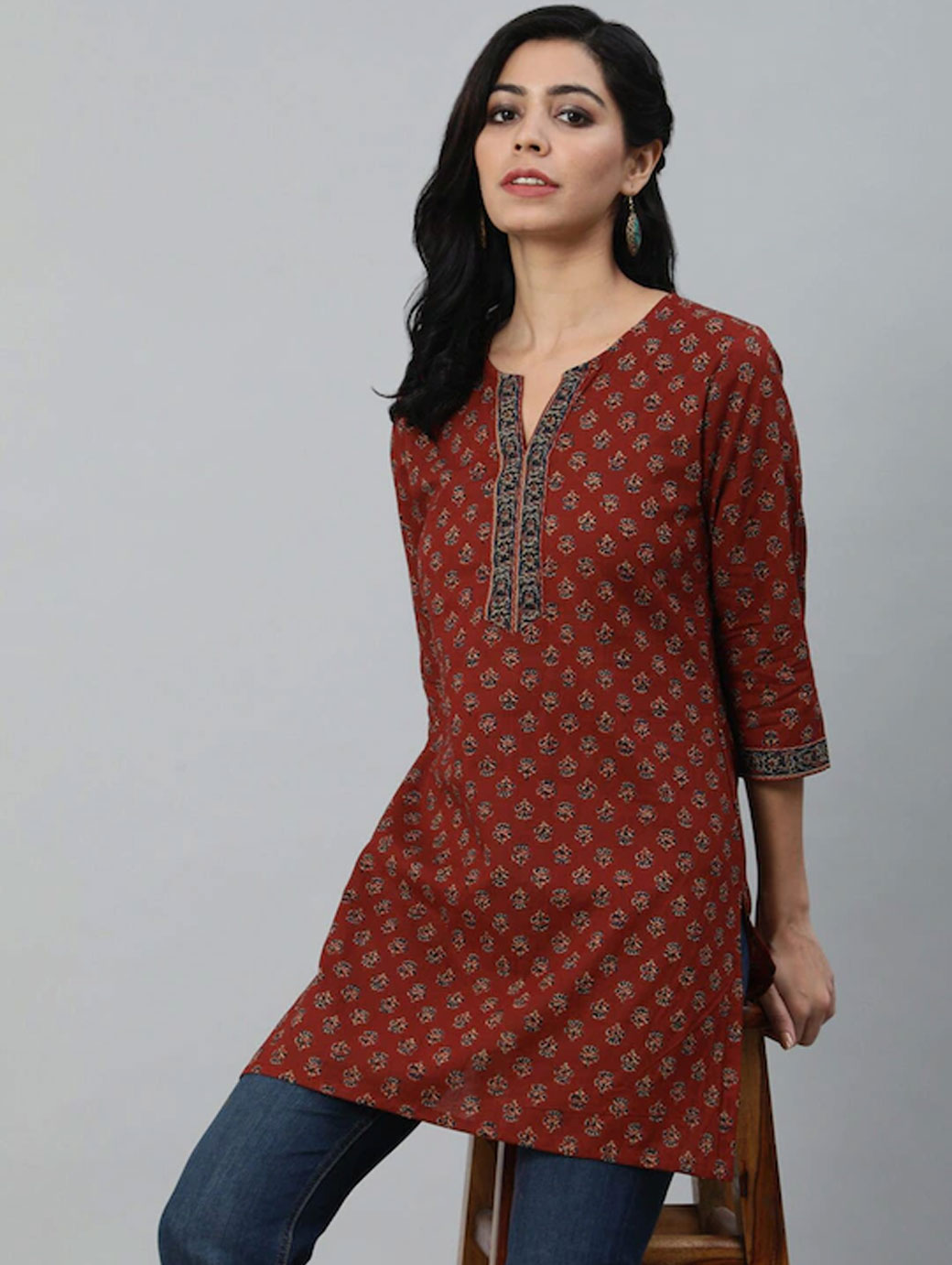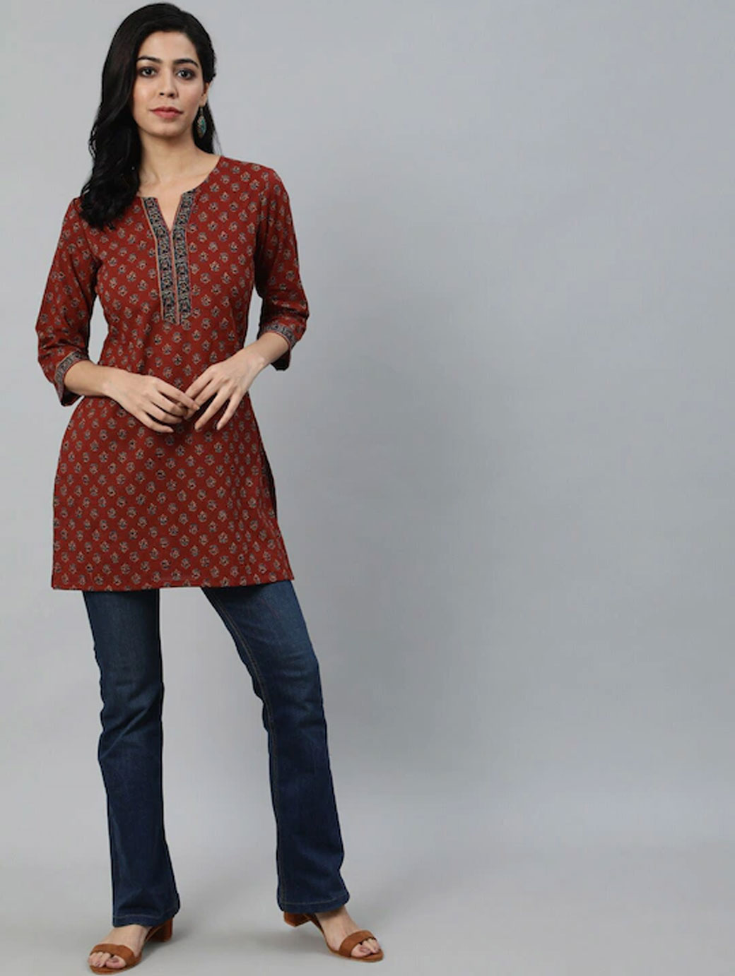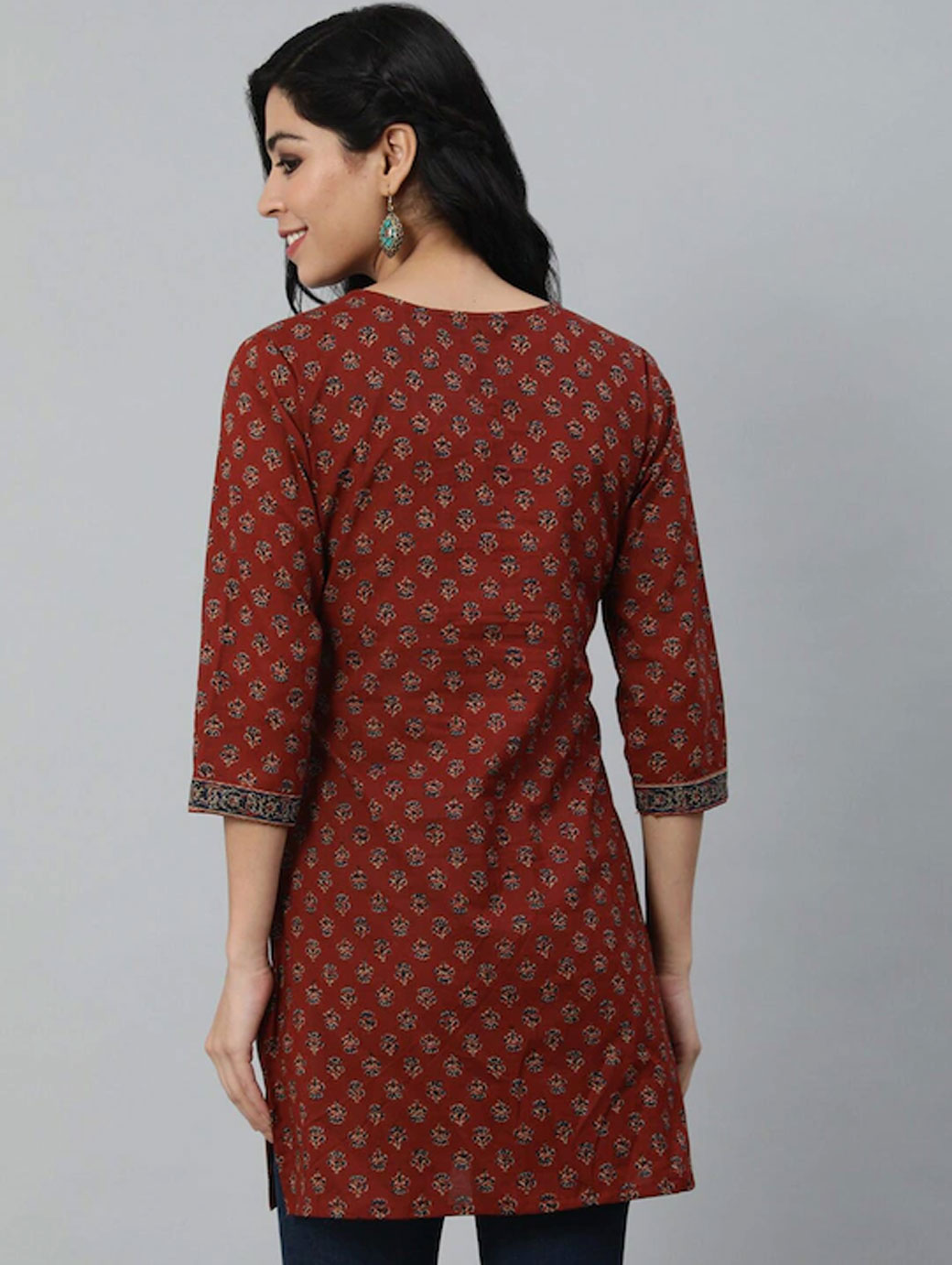 SKWomen Maroon Printed Tunic With Three Quarter Sleeves.